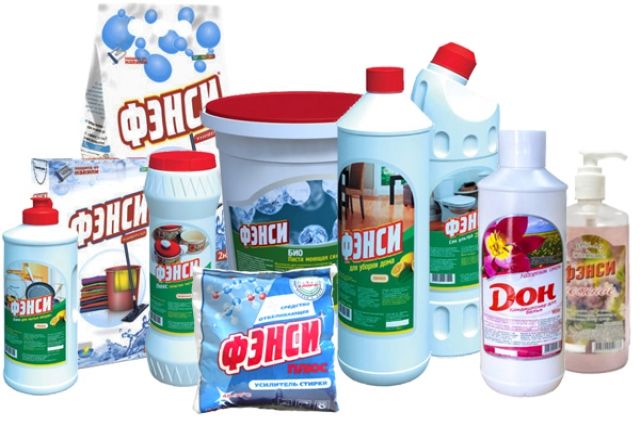 该公司生产用于家庭、清洁公司、办公室清洁的通用洗涤剂和清洁剂。该产品完全符合家用化学品的所有国际质量标准。平均费用:500 卢布。