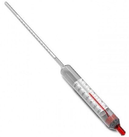 要檢查酒計的準確性,您需要將其放入裝有溫(20±2°C)清水的容器中。工作比重計的所有指標都為零。