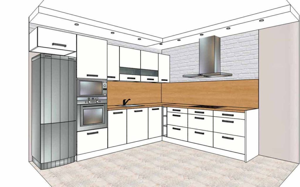 設計師離開是免費的,版面的準備也是免費的,不管客戶是否下單。在這裡,您只能為舊廚房訂購一個檯面,並配備新電器。對客戶的好處: