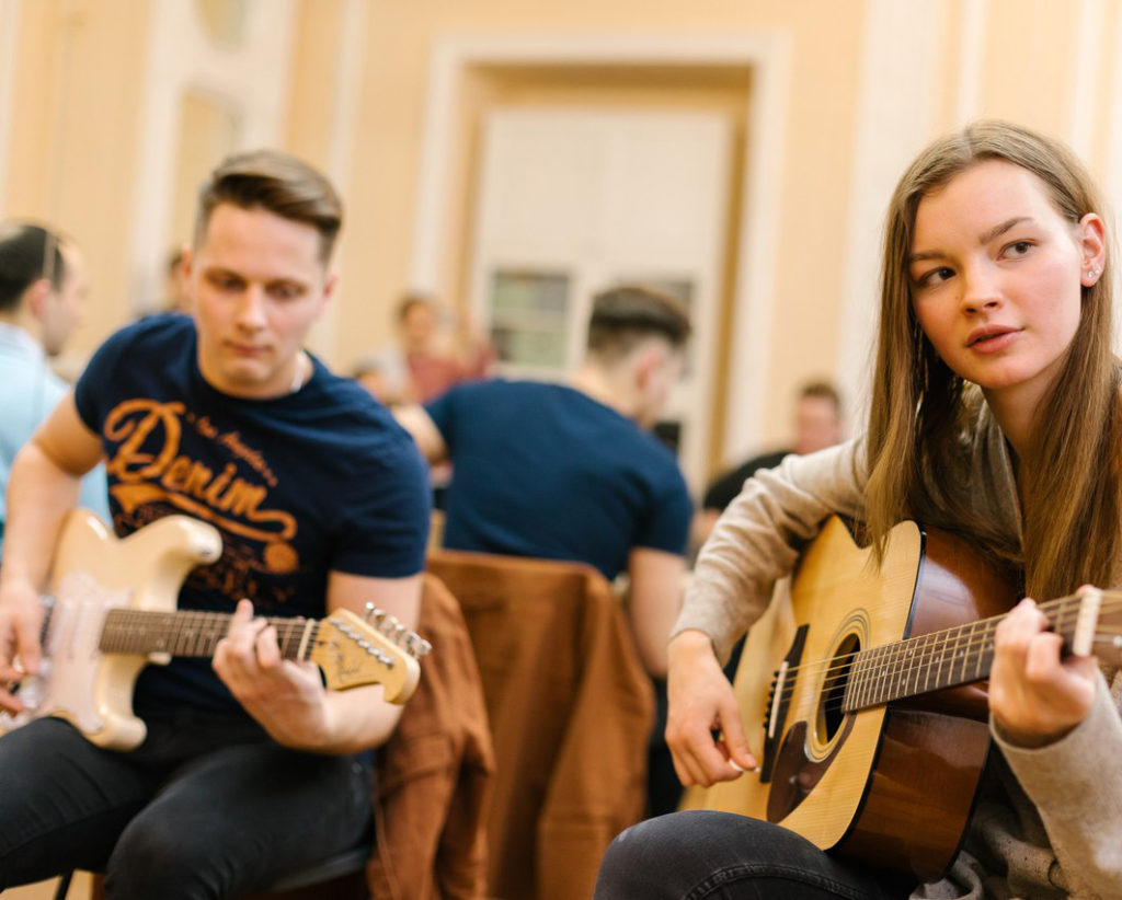 經驗豐富的教師將幫助培養聽力和節奏感,調整呼吸,並教授即興表演和在舞台上表現的能力。